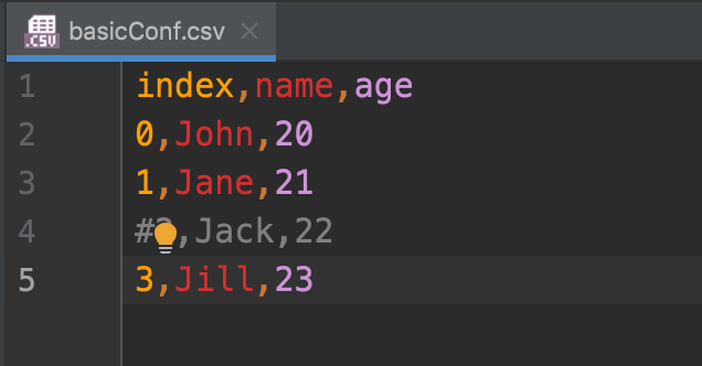 별도의 CSV 스펙으로 '#' 을 주석으로 처리합니다.